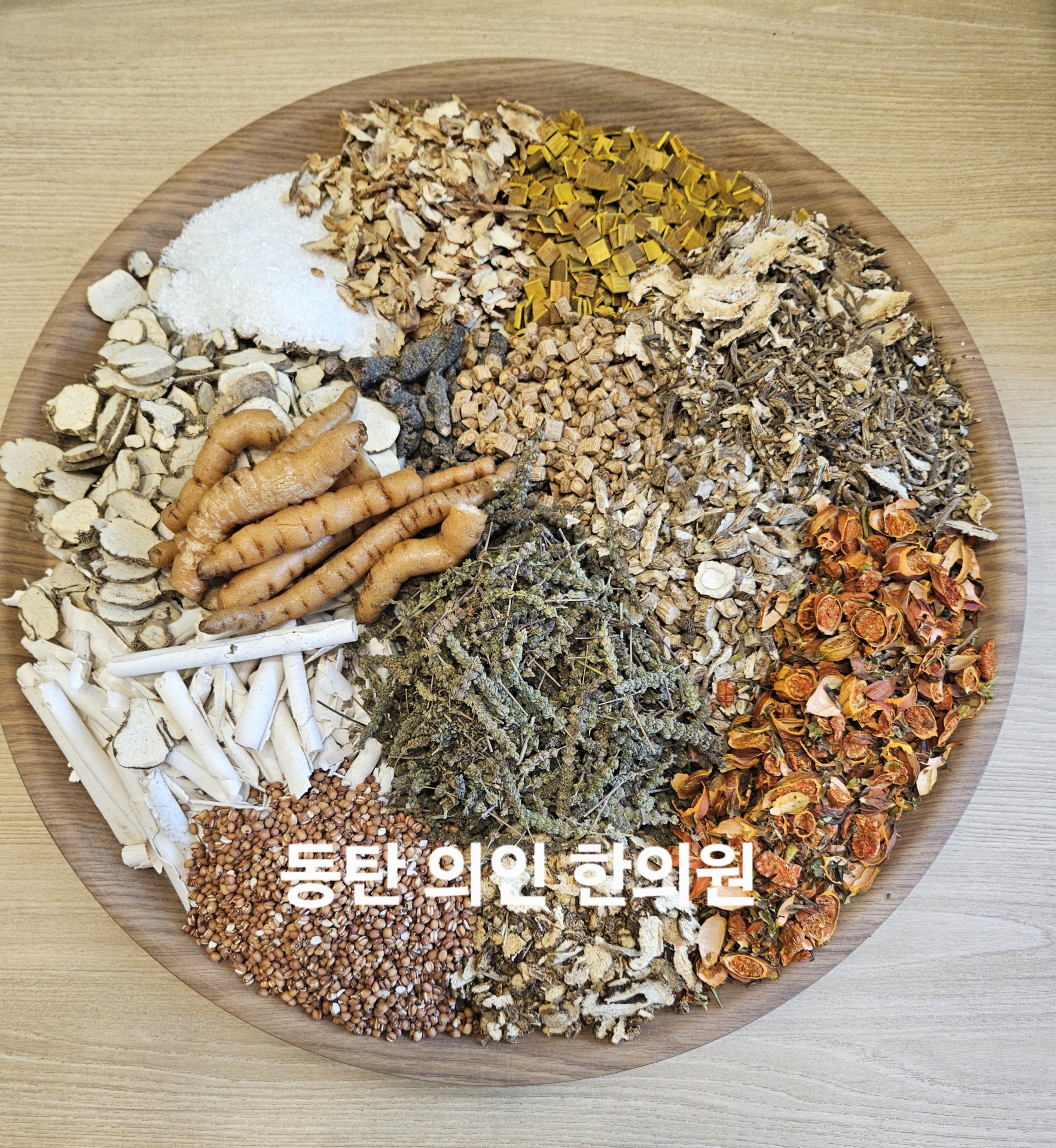 생지황은 량혈보음(생지황을 구증구폭하는 과정을 거치면 숙지황이 됩니다.)하는 역할을 하여 피부염 및 열감의 조절에 활용하며, 치자는 심화를 내리고, 지모 황백은 허열을 내리는 역할을 합니다. 복령은 노폐물을 배설하며, 당귀는 혈행을 개선하며, 형개, 방풍은 풍사를 발산하는 효과가 있습니다. 의이인은 습담을 제거하며, 건지황은 보음합니다.(진액을 보태어 열감을 조절하는 원리는, 가뭄으로 인해 논이 갈라지고 산불의 위험성이 높아질때 물을 보태어 주는 원리로 이해하시면 됩니다. 계절이 바뀌는것(해열)도 필요하지만, 진액을 공급하여 열감을 조절하는 것도 인체에는 안전하고 효과적이죠) . 전반적으로 처방의 구성이 인체에 편중된 열감의 조절에 초점이 맞추어져 있으며, 이러한 처방의 구성원리는 한의학적인 접근방법을 특징적으로 보여준다고 하겠습니다. 만성질환이며 체질적 편중의 문제이므로, 3개월이상의 꾸준한 투약과 치료를 권해드렸습니다. 환자분의 불편한점이 꼭 개선되길 바랍니다.