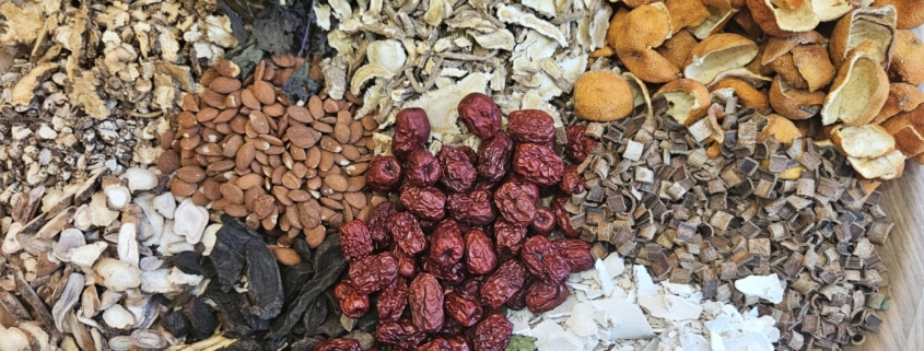 이 분은 정리탕을 구사하되 약재의 용량을 증감하고, 당귀를 넣어 장을 윤장(장의 진액을 보강-60대 이후의 변비는 단순히 뚫어주는 약을 쓴다고 풀리진 않습니다.) 하게 하며, 소통을 돕는 후박의 양을 더 증량했습니다. 중앙에 아몬드 형상의 약재는 도인인데, 장을 소통하며 변비에 활용하는 약재입니다. 검은 색 약재는 현삼인데, 보음(진액을 보강)하는 역할을 하여 노인성장 증상에 활용하도록 하였습니다.