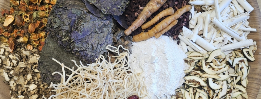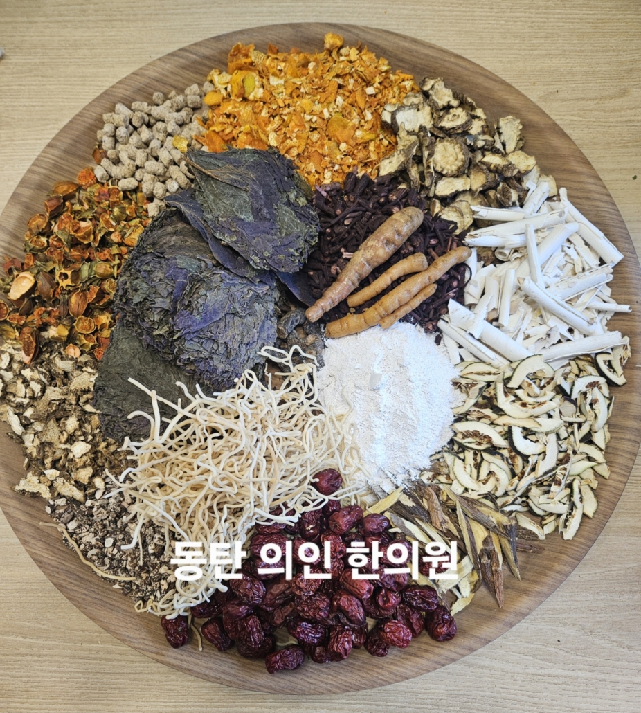 처방은 6가지 울체를 풀어준다는 의미인 육울탕을 처방하였습니다. 치자는 심화를 풀고, 복령은 노폐물을 배설하고 심신을 편안히 하며, 자초는 신경을 안정시켜 수면을 도와줍니다. 생지황은 량혈보음(피의 열을 식히면서 진액을 보강)하며, 향부자는 울체를 풀고, 모려는 두근거림을 완화하는 작용을 합니다. 지각 진피는 소통을 도와주며, 신곡은 위장의 기운을 복돋아 줍니다. 사진 중앙에 면 같은 약재는 등심이라는 약재인데, 등심은 심화를 내리며, 소변을 소통하게 하는 약재입니다. 약재가 매우 가벼워 50그람만 되어도 약재의 크기가 꽤 큽니다.
