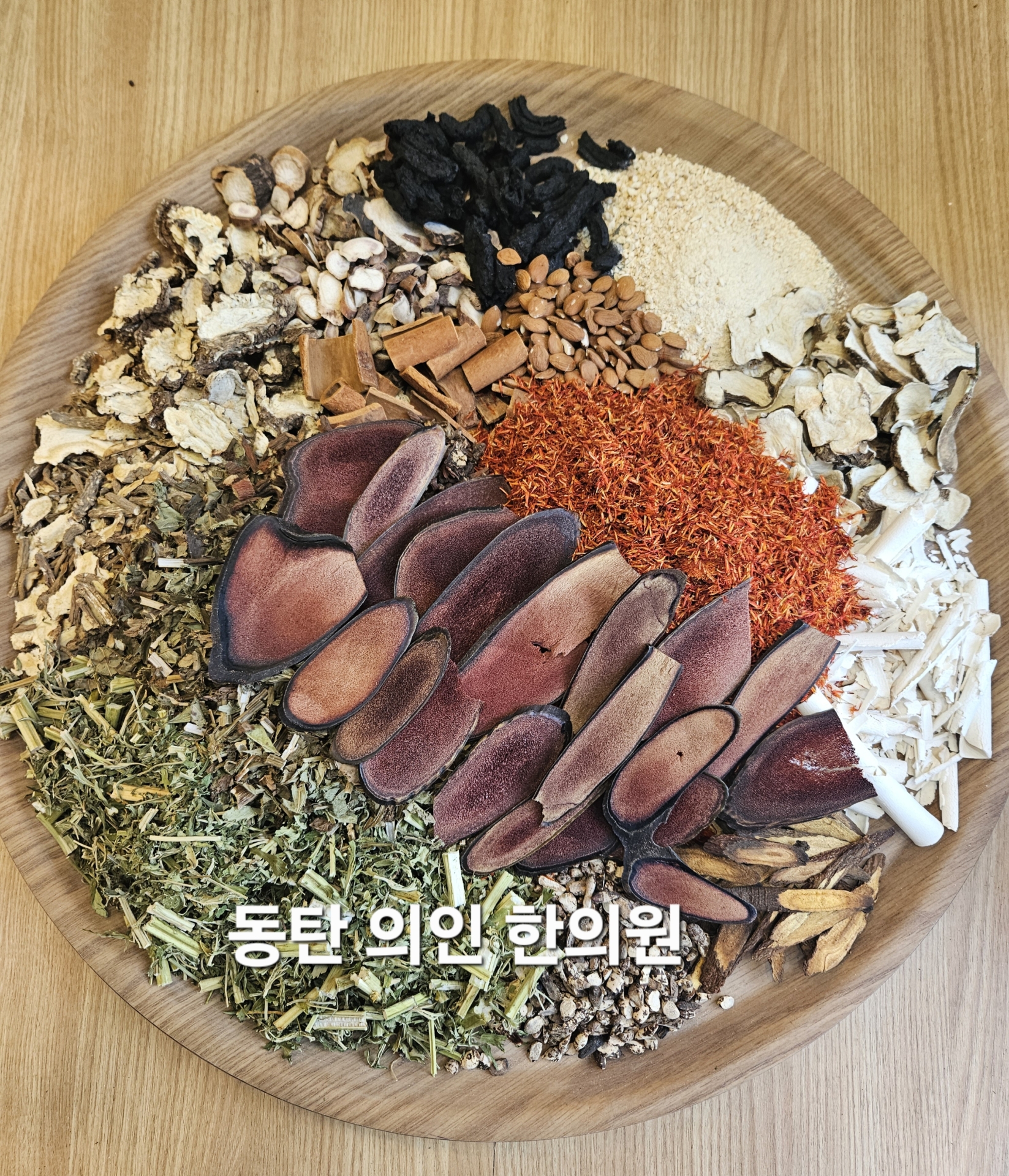 당귀와 천궁은 보혈 행혈을 위한 주 역할을 하며, 작약은 근육의 피로를 풀고, 숙지황(최상급 국산 구증구포 숙지황)은 보신 보혈합니다. 이 약재들이 여성의 대표처방인 사물탕을 구성하는 약재들입니다. 보기하는 약재인 인삼은 산후에 모유수유의 이슈가 크지 않으면 인삼도 종종 활용합니다. 복령인 노폐물을 배설하며,심신을 편안히 하는 역할을 합니다. 도인과 홍화는 어혈을 제거하는 약재이며, 익모초는 부인과 질환에 다용하는 약재입니다. 최상급 러시아 녹용 분골 상대는 이러한 혈허의 증상을 개선하는데 큰 효과가 있습니다. 산후는 가능하면 녹용을 적극적으로 활용하기를 많이 권해드립니다.