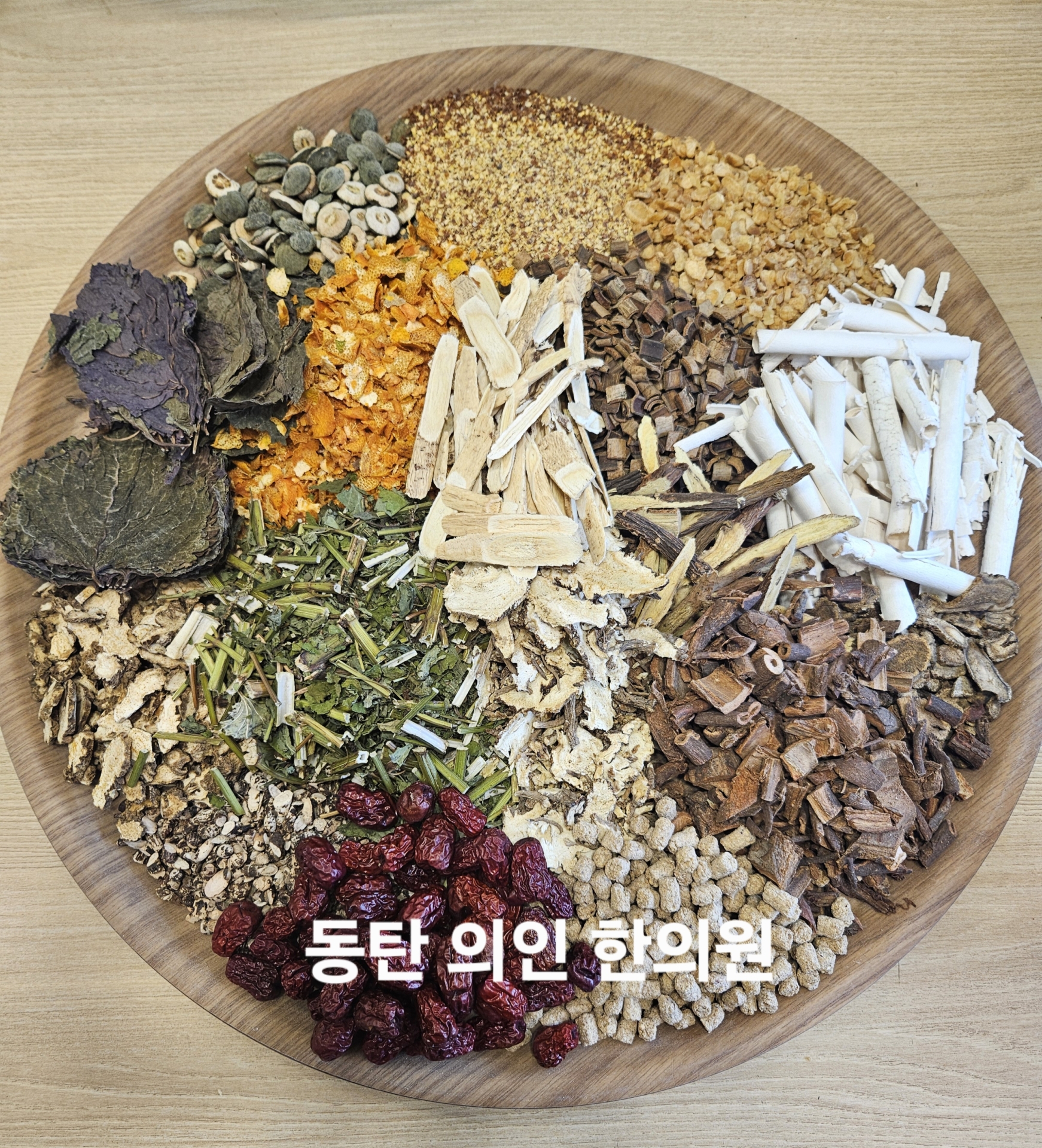 담음을 치는 반하 복령 진피의 조합인 이진탕이 들어가 있으며, 곽향 소엽은 비위의 습을 날리는 역할을 하며, 나복자는 담을 치며 소화를 도우며, 유근피는 위의 염증에 안전하게 많이 활용하는 약재입니다. 복령(동양허브 최상급 블랙라벨)은 노폐물을 배설하고 심신을 안정시키며, 향부자는 울결을 풀어주는 역할을 합니다. 전체적으로 처방의 구성이 위담증을 개선하고, 스트레스요인을 완화하며, 에너지와 순환을 개선하는 방향으로 구성되어 있습니다. 이러한 한의학적 접근 방법은 소통과 오장육부의 균형을 위주로 본다는 점에서 양방과 차별점이 있습니다.