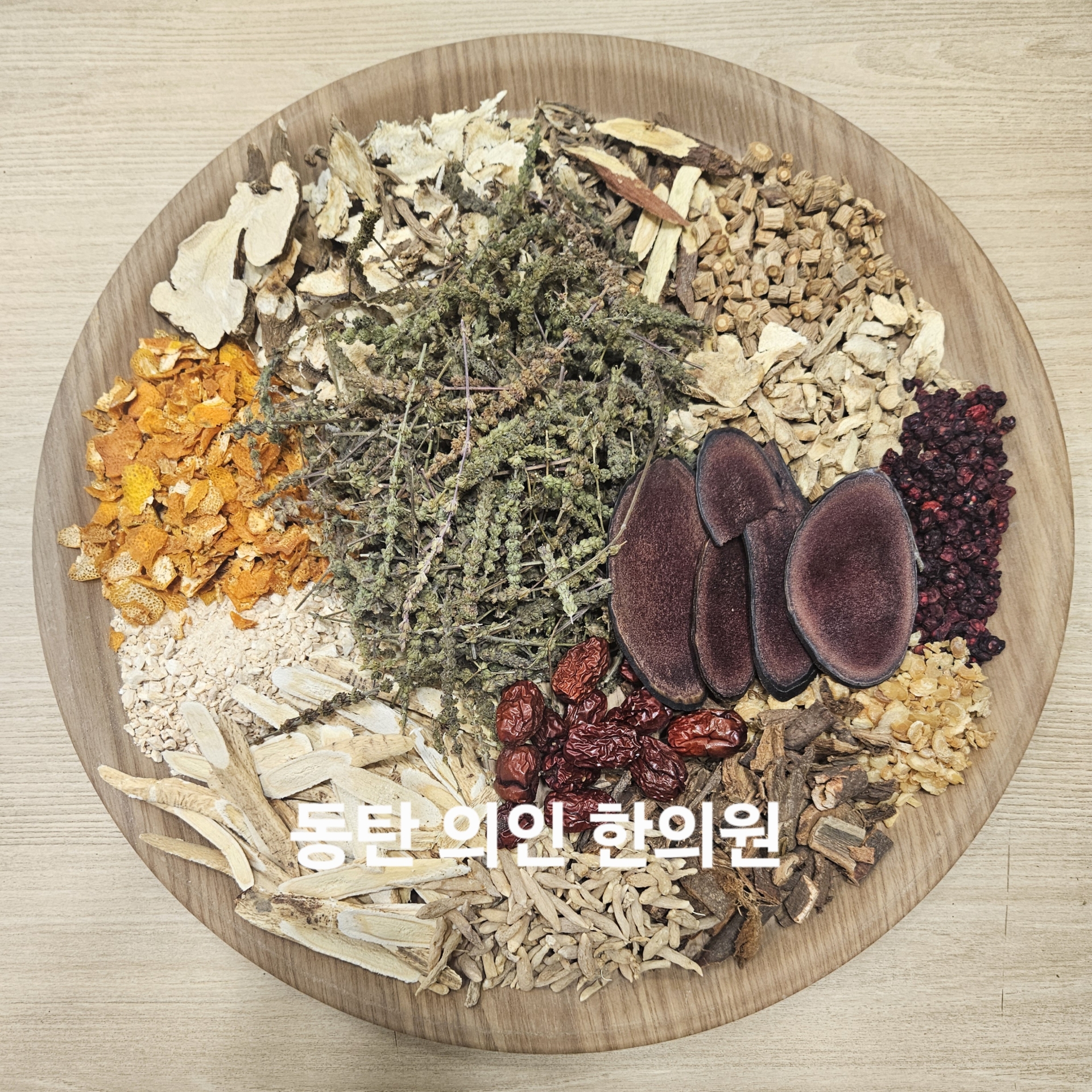 처방은 면역력과 체력을 개선하는 방향으로 구성하였습니다. 황기 인삼은 보기하며, 당귀는 보혈하는 효능이 있습니다. 백출은 비위의 습을 없애며 비위기능을 강화하는 역할을 합니다. 형개 방풍은 상부의 풍사를 날리는 역할을 하는데, 비염에 효과적으로 활용합니다. 오미자 맥문동은 폐의 진액을 보강하며, 유근피는 비염 및 호흡기 염증에 안전하게 활용합니다. 녹용은 보혈 및 면역력개선과 성장에 도움이 됩니다.