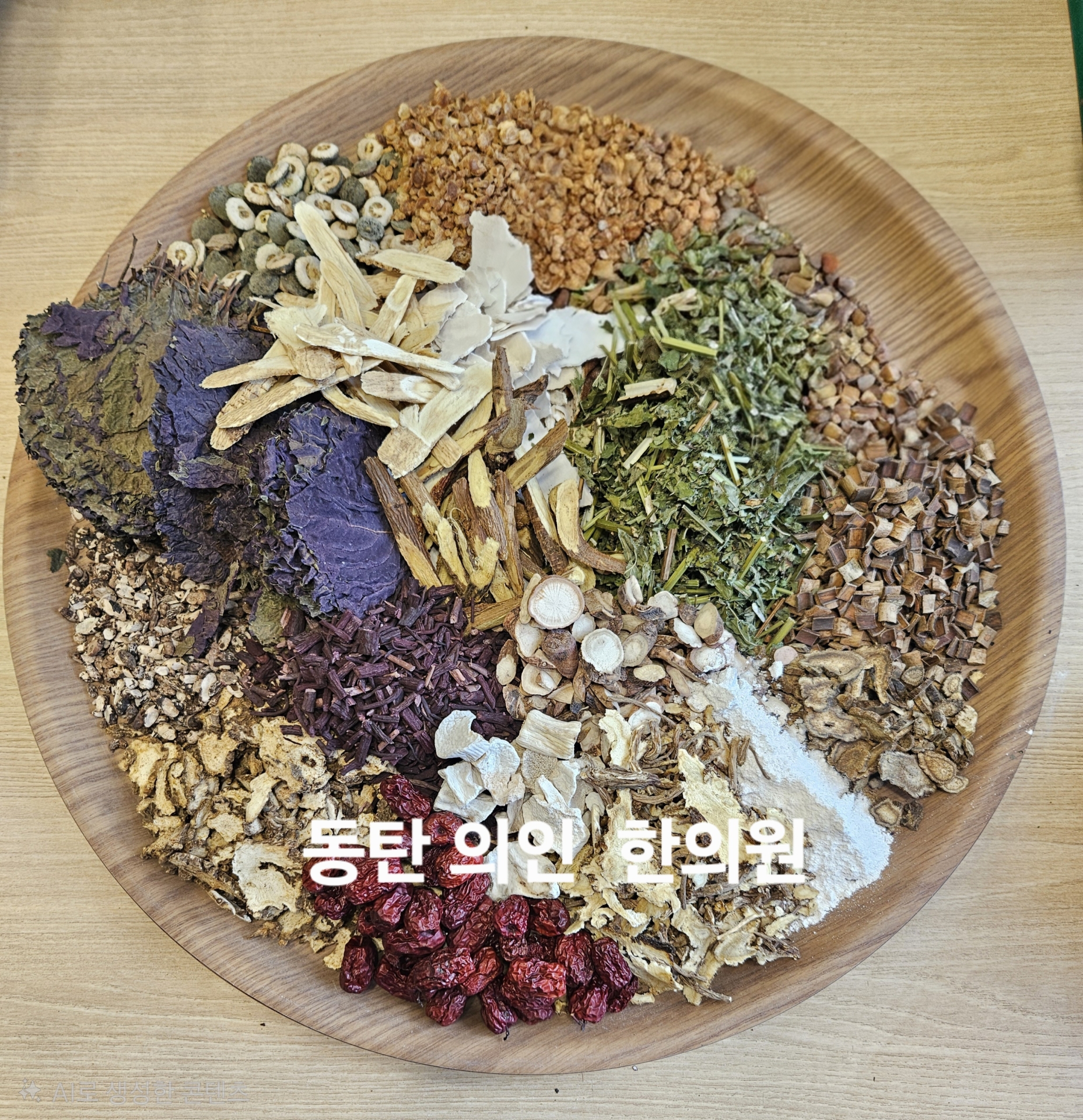 대표적인 처방으로 정리탕을 기반으로 몇가지 약재를 가감하였는데, 소엽의 양을 증량하여 몸의 습을 날려주고, 스트레스의 울체를 풀게 하였습니다. 소엽은 그림 좌측의의 깻잎(^^) 같은 모양인데, 소엽 중에 최상품입니다. 택사로 몸의 습을 빼주고, 긴장을 빼주는 역할을 합니다. 나복자는 소화를 도와주기도 하며, 담음을 없애기도 합니다. 향부자는 울결을 풀어주며, 모려는 장의 민감도를 떨어뜨리는 역할을 합니다.