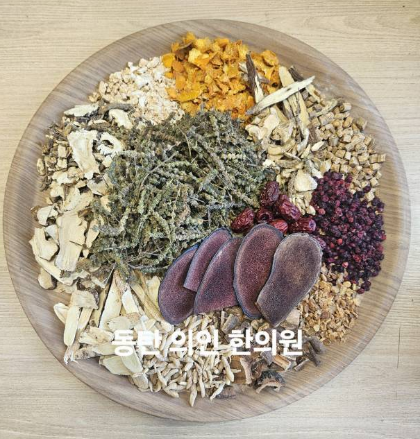 처방은 폐기능을 개선하되 비위기능을 함께 보완하는 보중익기탕을 기본으로, 상부의 염증을 발산하고 비염에 활용하는 방풍, 형개, 폐의 진액을 보강하는 맥문동, 오미자, 담음을 치는 반하, 비염 및 호흡기 질환 염증에 활용하는 유근피, 면역력과 체력을 증강하는 러시아녹용 상대를 넣어 약력을 증강하였습니다.