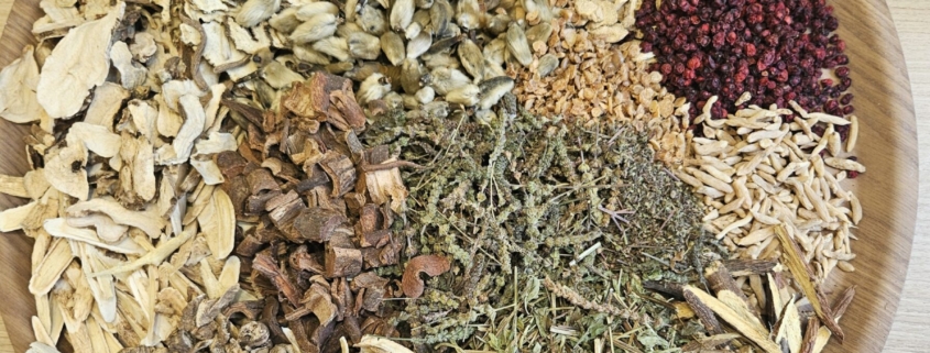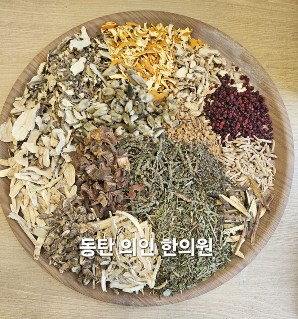 처방은 에너지를 보강하는(보기) 황기의 양을 증량하고, 폐의 진액을 보강하는 오미자 맥문동을 넣어, 보하는 기능과 비염에 효과적으로 대비하게 하였습니다. 사삼은 열감이 없이 진액을 보강하며, 형개와 박하는 상부의 풍사를 발산하는 효능이 있어 비염에 많이 활용됩니다. 신이화는 목련꽃이 피기 전의 꽃봉오리인데 비염에 효과적이며, 건강은 생강을 말린 약재인데 생강에 비해 온성이 강하고 발산하는 효능이 높아 비염에 많이 활용됩니다. 유명한 소청룡탕에도 건강이 들어갑니다.